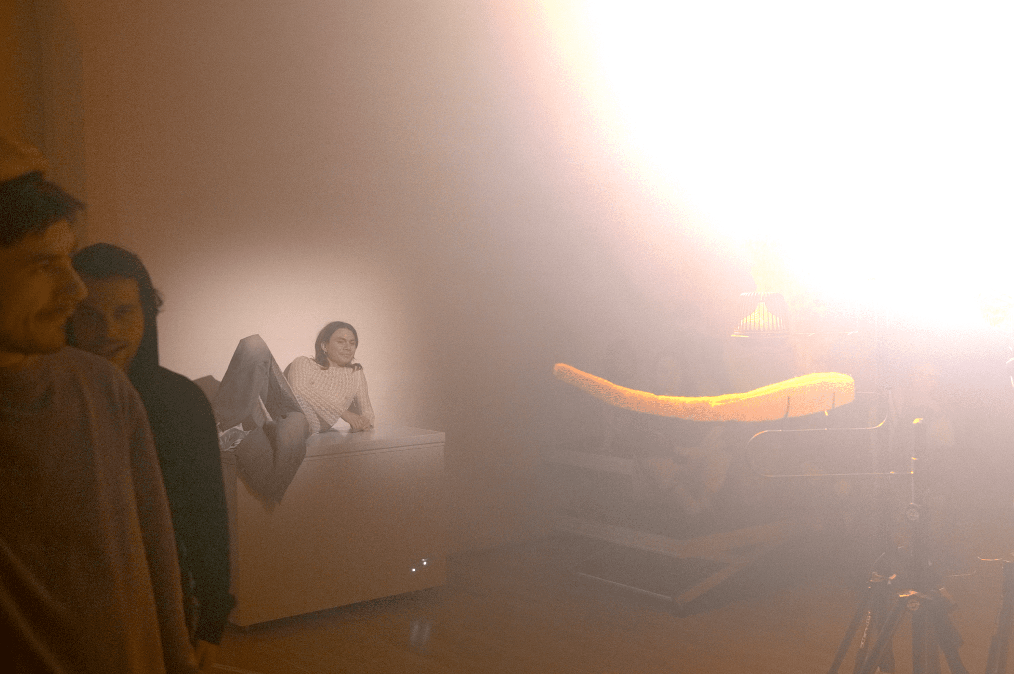 explores interconnectedness between fluid bodies through storytelling, inviting active viewers and passive engagers to embrace the multiplicity of a reimagined environment. Performers from Guatemala and Japan, connected by their ground's origin where Luffas grow, embody this narrative through the lens of a sentient sponge organism. Resonating with the Hechimayayakushitoju Temple in Nagoya, Japan, symbolizing hope and healing through the animism of the „Luffahs“. In this environment of shredded membranes holding frozen archived stories, a corporeality is revealed, softening in response to a destabilizing world. On Becoming Porous, the “Luffas” serve as a reminder for a body like ours, constantly shapeshifting and evolving into another being, another body, another form.